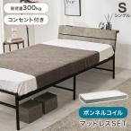 宮棚付きベッド マットレス付き 高反発ウレタン 耐荷重300kg 高耐荷重 頑丈 スチールベッド パイプベッド シン プル セミシングルショート コンセント付