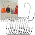 バッグハンガー s字フック ねじれ かばんかけ 収納 吊り下げ 10cm 12個セット (シルバー)