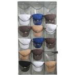 帽子収納ラック キャップホルダー 吊り下げ式 18個 24個 壁面 ドア掛け 小物入れ 省スペース (グレー, 18ポケット)
