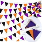 ガーランド 布製 飾り 布ガーランド 装飾 3色 ペナント 三角旗 キャンプ ハロウィン 誕生日 (紫・オレンジ・黒, 12m)