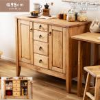 サイドボード キャビネット 幅95 収納 天然木 パイン材 木製 引き出し4つ チェスト おしゃれ 完成品 カントリー調 食器棚 小物収納 ダイニング 扉 可動棚 木目