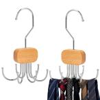 (Milifox) ベルトハンガー 木製 2個セット ネクタイハンガー 6本掛け 360°回転 小物掛け 多機能収納