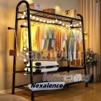 ハンガーラック おしゃれ キャスター付き 可動棚 ダブル ハンガーラック 頑丈 衣類収納 室内物干しスタンド 洋服ラック スリム 黒 白 スチール製 スリム 爆買