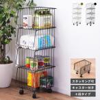 ランドリーラック 収納 4段 ワゴン アンティーク おしゃれ キャスター付き スリム バスケット 棚 積み重ね キッチン 洗面所 コンパクト 黒 ギフト プレゼント