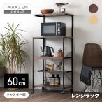 レンジラック MAXZEN 幅60cm MRS-CS02-BR ブラウン キャスター付き スライド棚 大型レンジ可 2段天板 可動棚付き 耐荷重計85kg