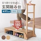 手すり付き玄関踏み台 両手すり 転倒防止 幅76.5cm 玄関台 木製 両手タイプ 両側 靴 収納 段差 階段 玄関ステップ ステップ台 代引不可