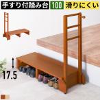 玄関踏み台 耐荷重100kg 手すり付き 木製 玄関台 ステップ 立ち上がり補助 介護 玄関椅子 ベンチ 靴収納 天然木 転倒防止 横揺れ防止 フック付き 杖掛け 100幅