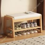 玄関ベンチ 2段式靴収納 シューズラック 収納ベンチ 竹製 玄関椅子 高反発クッション 室内 靴棚 靴入れ 組立簡単 省スペース 下駄箱 靴箱 スリッパラック