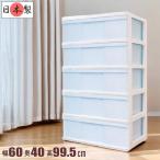 衣装ケース 収納ケース 引き出し プラスチック ワイド チェスト タンス 5段 おしゃれ ホワイト/アイスブルー 幅60cm 奥行40cm 高さ99.5cm 組立式 日本製