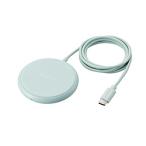 ELECOM(エレコム) ワイヤレス充電器 Qi認証 5W 卓上 滑り止めパッド ケーブル一体 おくだけ充電 グリーン W-QA25GN