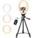 UBeesize LEDリングライト 10インチ スマホ三脚 自撮りライト ビデオライト タッチパネル操作式 zoom会議/ビデオ撮影/化粧/ブ