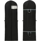 ガーメントバッグ 2枚セット 不織布 透明窓付き 撥水 スーツカバー ドレスカバー ロングコート収納 (ブラック, 180x60cm)