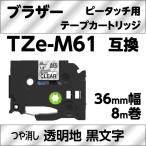 ブラザー ピータッチ・ピータッチキューブ 用 互換 ラミネートテープ 36mm TZe-M61 マット透明地 黒文字 つや消し