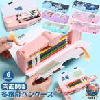 筆箱 両面開きペンケース 小学生 多機能 大容量 ペンホルダー 筆入れ 箱型 鉛筆削り付き ハサミ 時間割表 消しゴム テープカッター 文具ポーチ