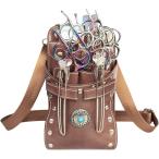 シザー ケース 7丁 美容師 ハサミ トリマー プロ 仕様 ウエスト バッグ PU レザー コンチョ(ブラウン)