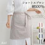 ショートエプロン 綿100% カフェエプロン 前掛け ストライプ フリーサイズ ショート 腰巻 紐 綿 キッチン 飲食店 制服 料理 おしゃれ カフェ G352