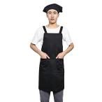 [OTAKUMARKET] エプロン 三角巾 2点セット 大人 メンズ 男性 女性 用 おしゃれ 黒 無地 業務用 割烹着 H型 丈短い 動きやすい