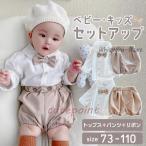 ベビー服 フォーマルスーツ ロンパース ベビーウェア フォーマル 2点セット 上下セット 男の子 ベビースーツ セットアップ 蝶ネクタイ付き 半袖シャ
