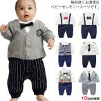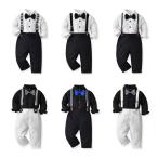 送料無料 新生児 フォーマル カバーオール ベビー ロンパース 男の子 蝶ネクタイ付 長袖 ボディースーツ セレモニー 紳士風 コスプレ 誕生日 結婚