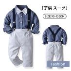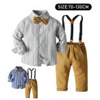 キッズ フォーマルスーツ 男の子 上下2点セットアップ 長袖シャツ+長ズボン サスペンダー付き 蝶ネクタイ付き ストライプ チェック柄 カッコイイ