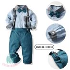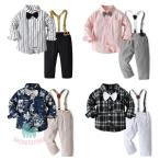 キッズ フォーマルスーツ 男の子 上下2点セットアップ 長袖シャツ+長ズボン サスペンダー付き 蝶ネクタイ付き ストライプ チェック柄 カッコイイ