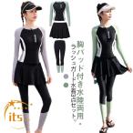 レディース 水着 3点セット 長袖 ラッシュガード 水陸両用 レギンス スカート UVカット 速乾 胸パッド付き ママ水着 上下 セパレート 海 温泉