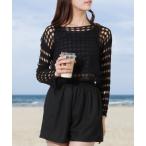 ラッシュガード 「2点セット」Vネック 長袖 シアー ニット ラッシュガード レディース