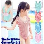 子供用水着 女の子用 ワンピースタイプ ストライプ ボーダー フリル キッズ ジュニア 女児 女の子 小学生 幼児 水着 柄 かわいい キュート ポッ