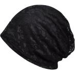ボリューム レース ヘア キャップ レディース お洒落 上品 ニット 帽子 伸縮 ストレッチ 通気 (ブラック, Free Size)
