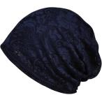 ボリューム レース ヘア キャップ レディース お洒落 上品 ニット 帽子 伸縮 ストレッチ 通気 (ネイビー, Free Size)