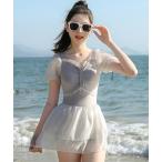 水着 「 ニコプチ 8月号掲載」キッズ水着 ふんわりオーガンジーティアードワンピ風オールインワンスイムウェア キッズ 子供 女の子