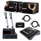 DAM カラオケスピーカーセット 音楽スタジオ品質のミキサーセット ワイヤレスマイク2本セット