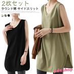 【2枚セット】ラウンド裾 サイドスリット タンクトップ 重ね着 体型カバー レイヤード インナー ロング丈 ロングタンクトップ ノースリーブ