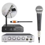 カラオケマイク スピーカーマイクセット 、サウンドカード(男の声/女の声/子供の声)付き、カラオケ機器、 ハイパワーマイク 手持ちマイク2本付き スピーカー