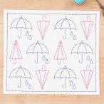 刺し子キット ふきん 白 <傘> 3541UV10314-2 日本製 約30×34cm | 刺し子のふきん 花ふきん キット 水で消える図案 かんたん 初心者 原ウール