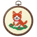 オリムパス かんたんクロス・ステッチ刺しゅうキット イヌとお花(フープ付) 【刺繍キット】