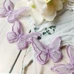 4枚入り 刺繍 蝶々 パーツ パープル 立体感 オーガンジー 変更あり アクセサリー パーツ