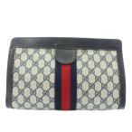 グッチ GUCCI クラッチバッグ セカンドバッグ PVC レザー GG柄 シェリーライン 総柄 ベージュ 紺 ネイビー /XZ ■OH ■GY18 メンズ