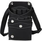 シザーケース 美容師 トリマー 理容師 7丁収納 黒 PUレザー シザーバッグ ベルト付 肩掛け 腰掛け対応 (ブラック)