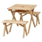不二貿易 ガーデンテーブルセット BBQテーブル&ベンチセット 幅62×奥行75×高さ65cm ナチュラル 2