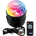 ミラーボール ディスコボールライト LED USB給電 7色パターン リモコン付き モバイルバッテリー対応 回転式 カラオケ (ブラック)