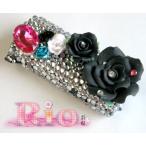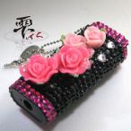 姫系 スワロ使用 ブラックセクシー ライターケース チャーム付 全デコ by-雫