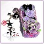 小悪魔系 ブラックにパープルパールでかわゆいデコライターケース チャーム付 デコ製品 by-雫