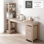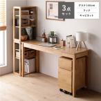 天然木 デスクシリーズ 3点セット デスク 140cm幅 + ラック + キャビネット ナチュラル デスクセット 引出し付き