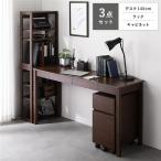 天然木 デスクシリーズ 3点セット デスク 140cm幅 + ラック + キャビネット ブラウン デスクセット 引出し付き