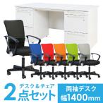 法人限定 デスク チェア セット 両袖机 幅1400mm 3段袖×3段袖 オフィスデスクセット ワークテーブル デスクセット メッシュチェア デスクセット LRD-147-S7