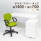法人様限定 オフィスデスク スチールデスク 平机 1400×700 + オフィスワゴン + ワークスチェア 肘付き セット