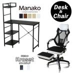 パソコンデスク オフィスチェア セット デスク チェア 在宅 テレワーク ラック 収納 メッシュ リクライニング 肘付き 低反発 マナコ クロセット2色