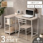 デスク チェア セット 3点セット 3段ラック 2口コンセント付き 机 椅子 デスクワーク 作業台 在宅ワーク リモート シンプル おしゃれ ナノ