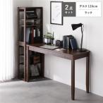 天然木 デスクシリーズ 2点セット デスク 120cm幅 + ラック ブラウン デスクセット 学習机 引出し付き 業務用 まとめ買い 爆買